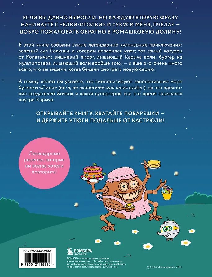 Нет, готовить будем не Смешариков, а вместе со Смешариками! Обитатели Ромашковой долины знают множество рецептов. Поваренная книга подскажет, как собрать бутерброд от Лосяша и сделать легендарный ОГУРЕЦ ОТ КОПАТЫЧА.