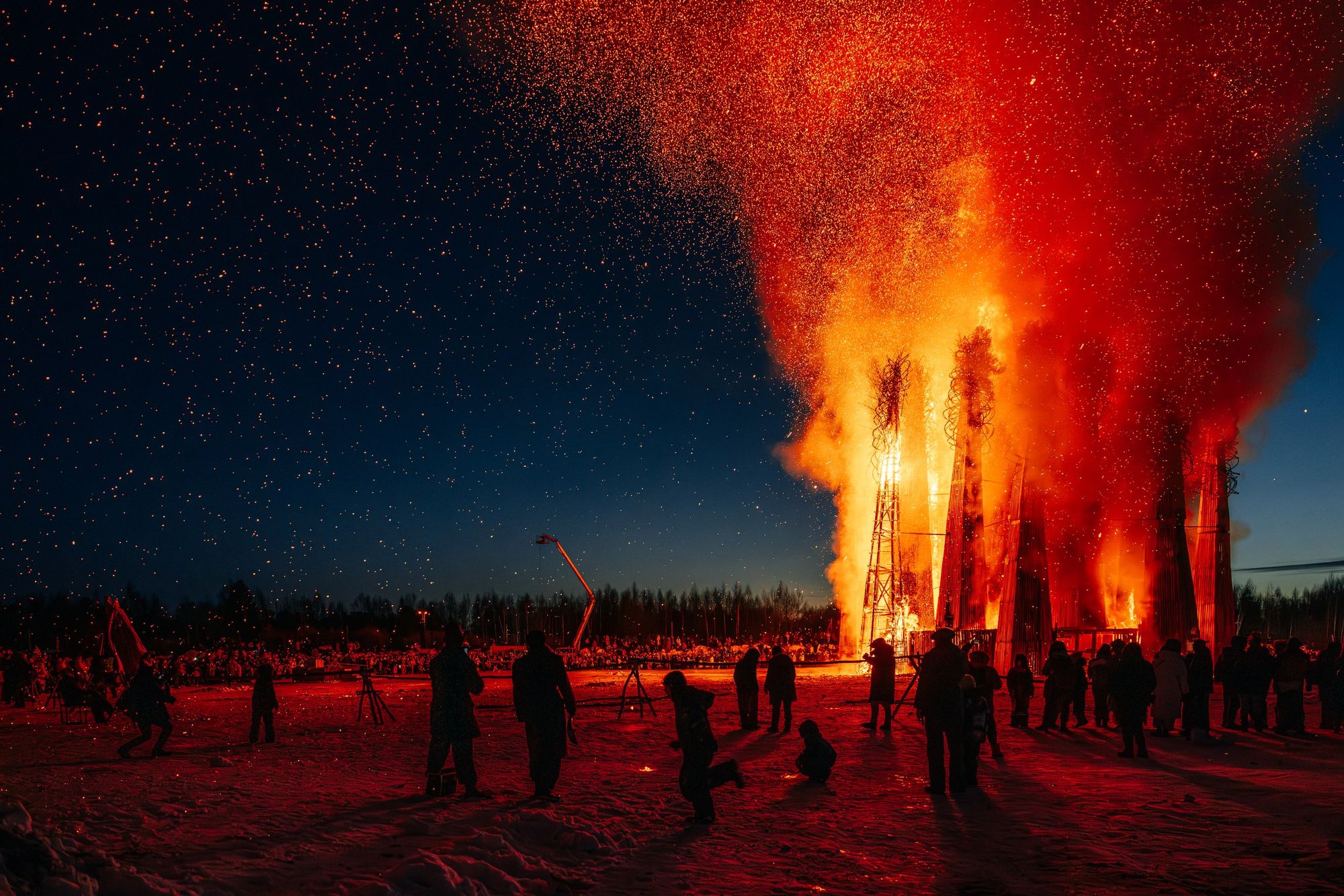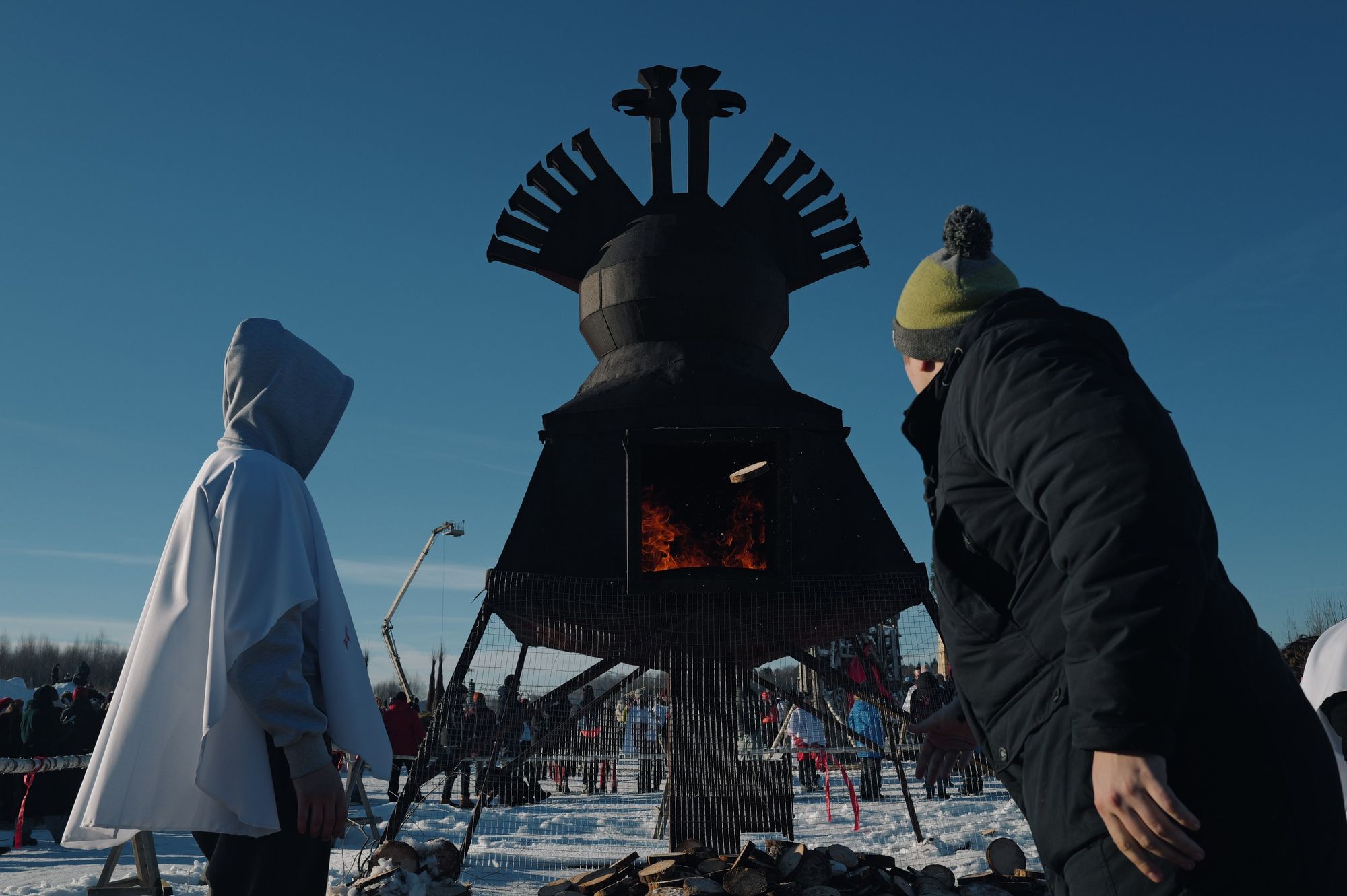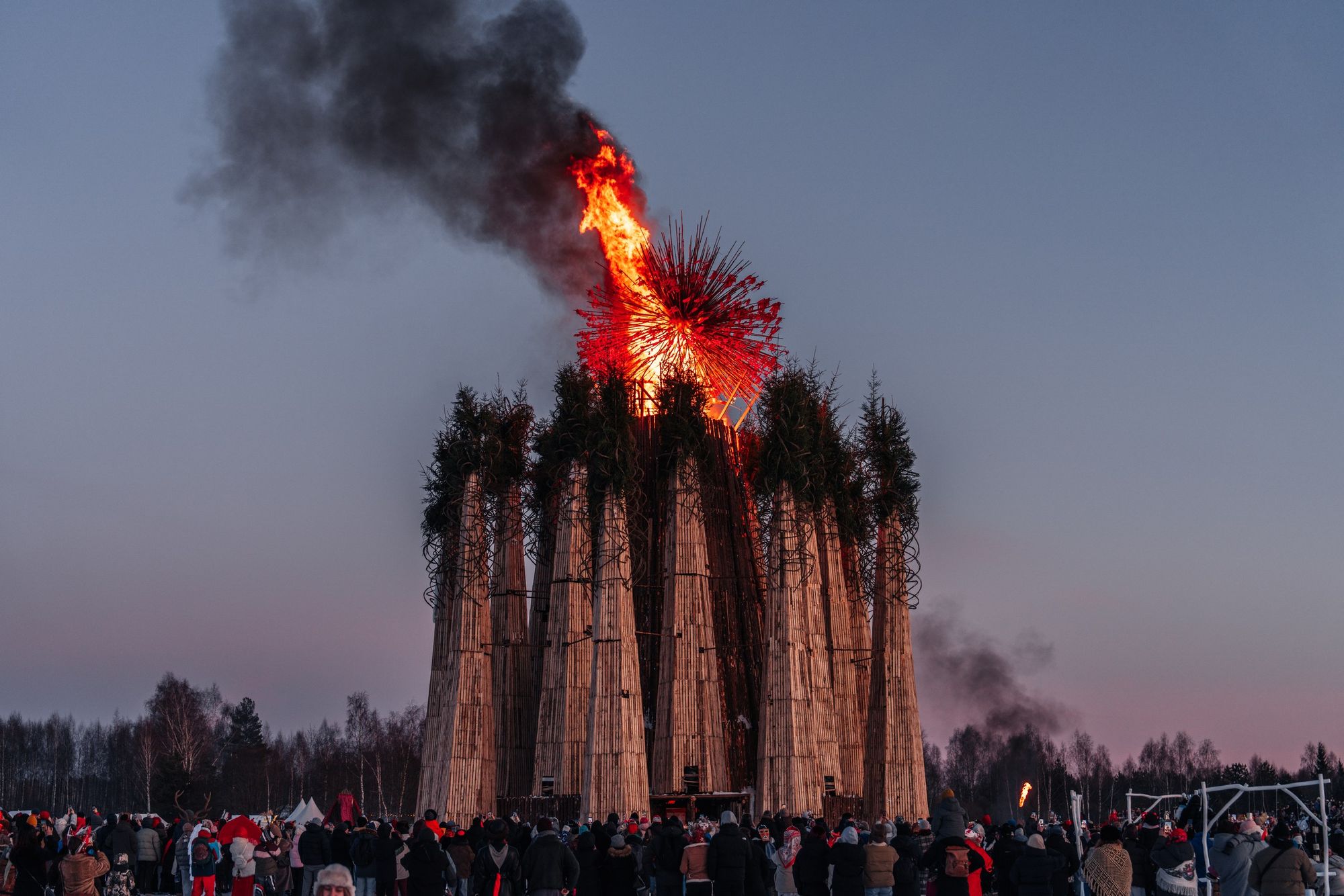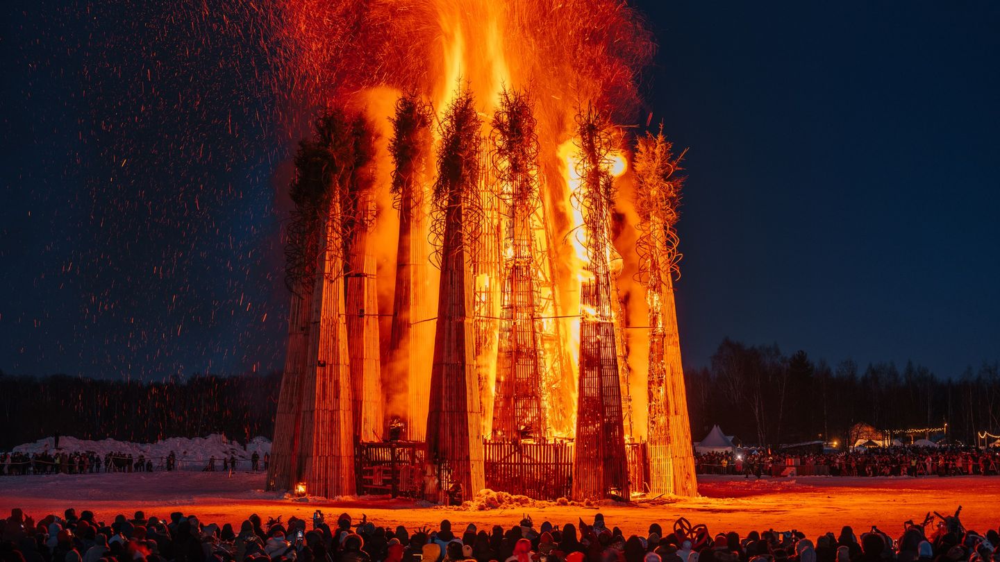 Арт дня. В Никола-Ленивце сожгли сердце на Масленицу