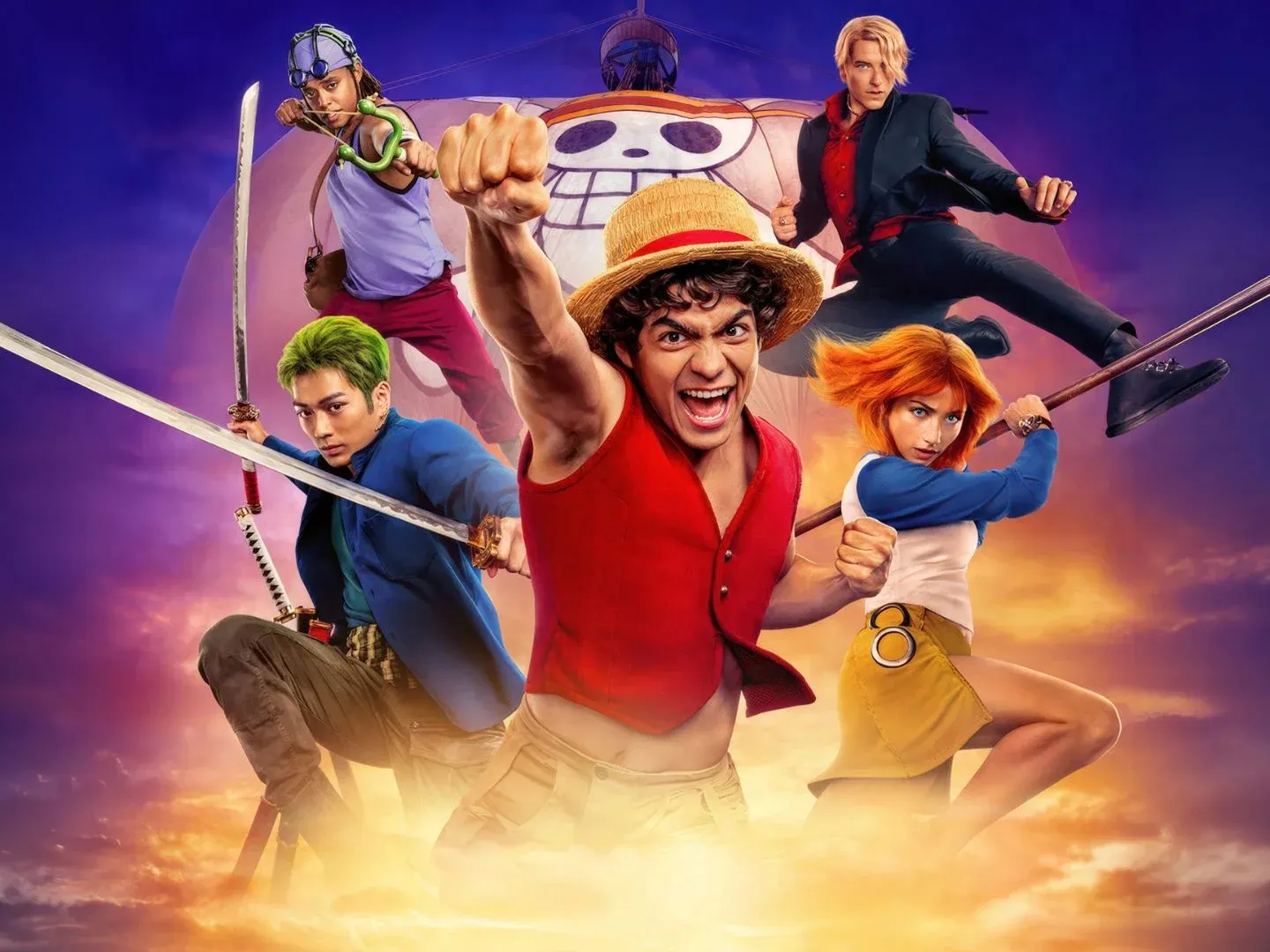 Мугивары в составе резинового капитана Манки Д. Луффи (Иньяки Годой), бывшего охотника на пиратов Ророноа Зоро (Макэню), боязливого снайпера Усоппа (Джейкоб Гибсон), ловеласа-кока (Таз Скайлар) и талантливого навигатора Нами (Эмили Радд) двигаются из Ист Блю в сторону Реверс Маунтин, чтобы наконец попасть на Гранд Лайн. Однако запасы на корабле кончаются, а некоторые члены экипажа плохо оснащены, поэтому большинством голосов принимается решение сделать остановку в «Городе начала и конца» — Логтауне, где родился и был казнён Король пиратов Голд Роджер (Майкл Дорман). Остров как раз украшен в честь годовщины значимого для морского дозора события, поэтому улицы забиты зеваками и есть вероятность пиратской угрозы, чего как раз опасается капитан Смокер (Каллум Керр).
