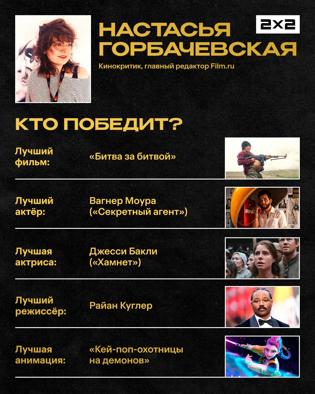 На этом фоне возможная победа фильма «Простая случайность» Джафара Панахи была бы не просто «политической отмашкой», в разрезе которой американские киноакадемики как бы говорят: «Выражаем обеспокоенность». Награда этой картине — дань выдающейся режиссуре и тончайшей драматургии, но только в третью очередь мощный политический жест. В поддержку кинематографиста, который десятки лет снимает подпольно, вопреки всевозможным палкам в колёса в виде ограничений и рисков для собственной свободы и здоровья.