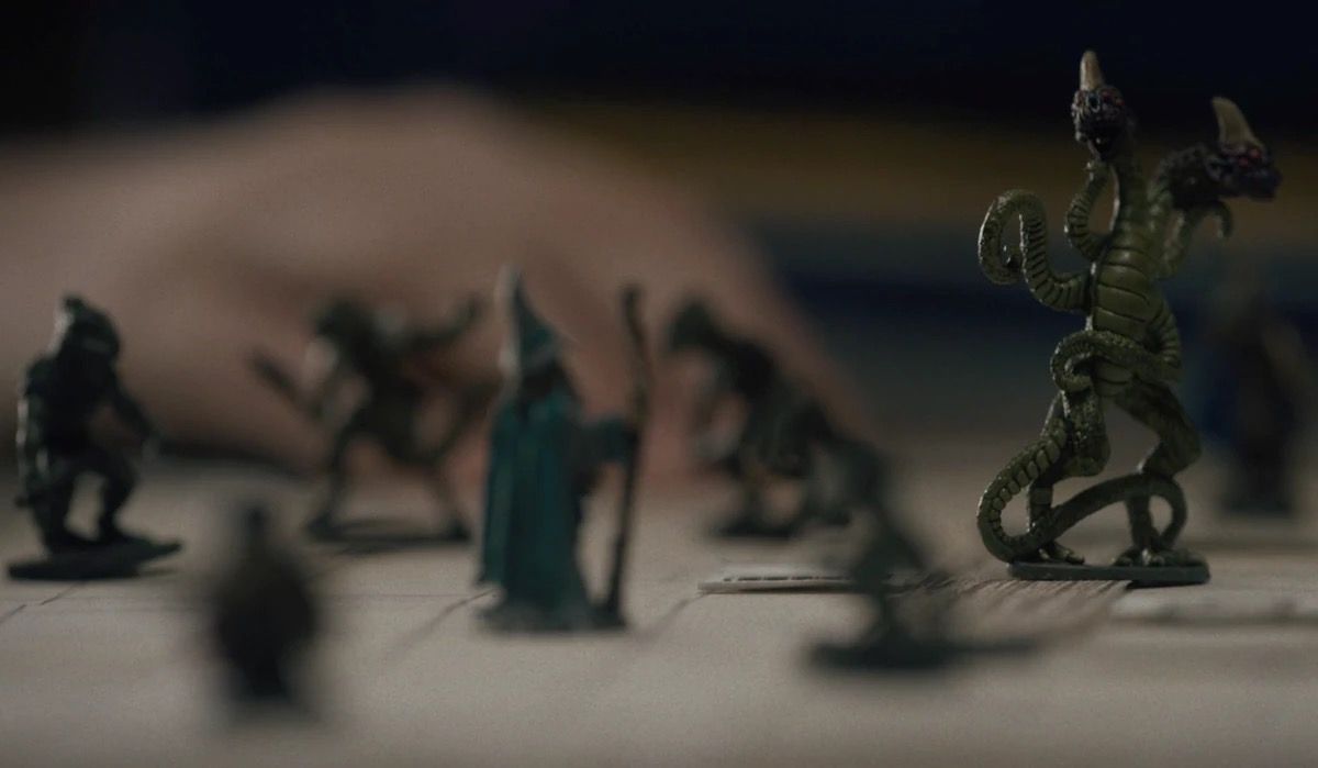 В самом первом эпизоде шоу Майкл, Уилл, Дастин и Лукас несколько часов играют в Dungeons & Dragons. Карен Уилер прерывает партию, чем расстраивает сына. В это же время Байерс бросает огненный шар в демогоргона, после чего ему выпадает семёрка. Числа не хватает, чтобы нанести удар, поэтому монстр настигает его.
