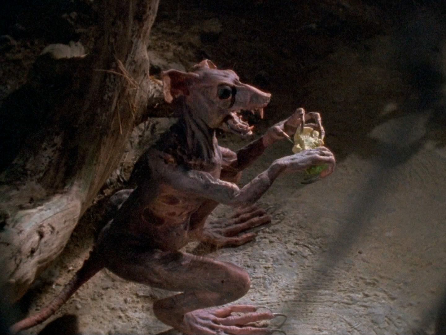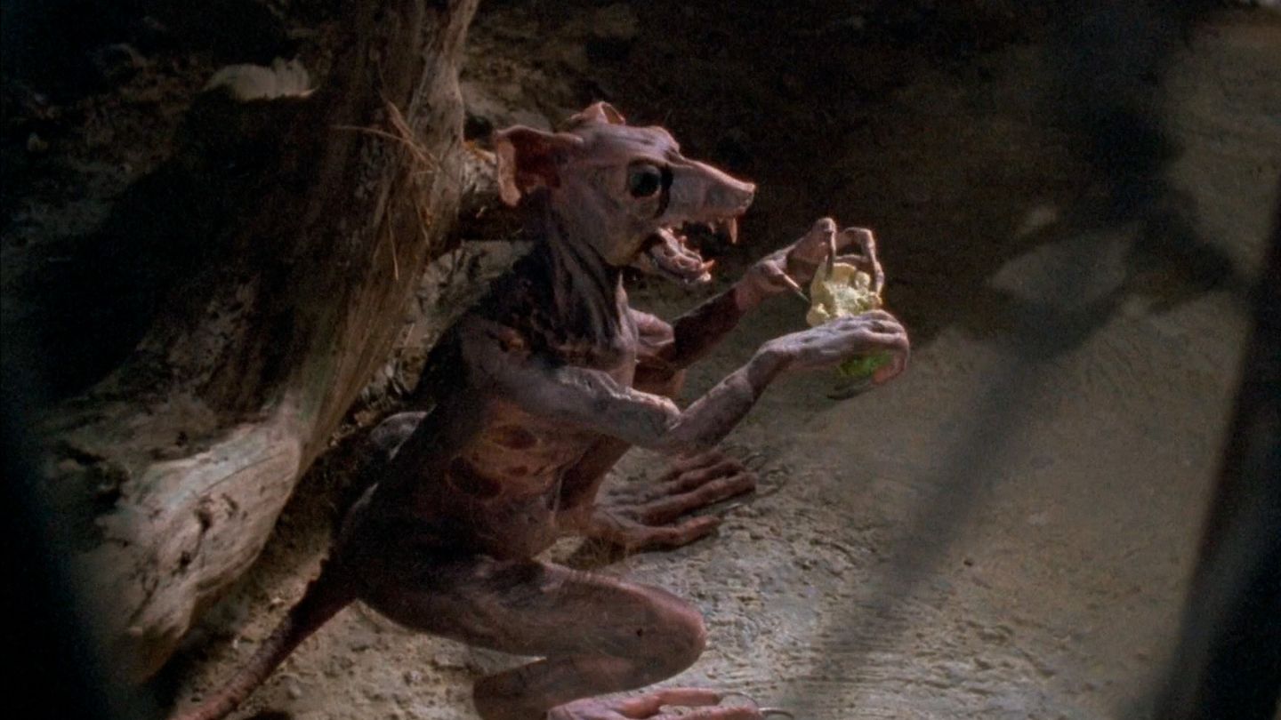 Но даже самые изобретательные решения, конечно, не могли скрыть кустарную природу картины. Уравновесить DIY-эстетику помогли натуралистичность насилия, смешанная с буффонадой. Например, в одной из сцен у Дерека откупоривалась голова, и ему приходилось засовывать кусочки выпавшего мозга обратно. Ну а во время нападения на базу пришельцев герой вырезал в стене дыру по форме своего силуэта, из-за чего «Инопланетное рагу» напоминало не типичный хоррор, а скорее набор скетчей «Луни Тюнз».