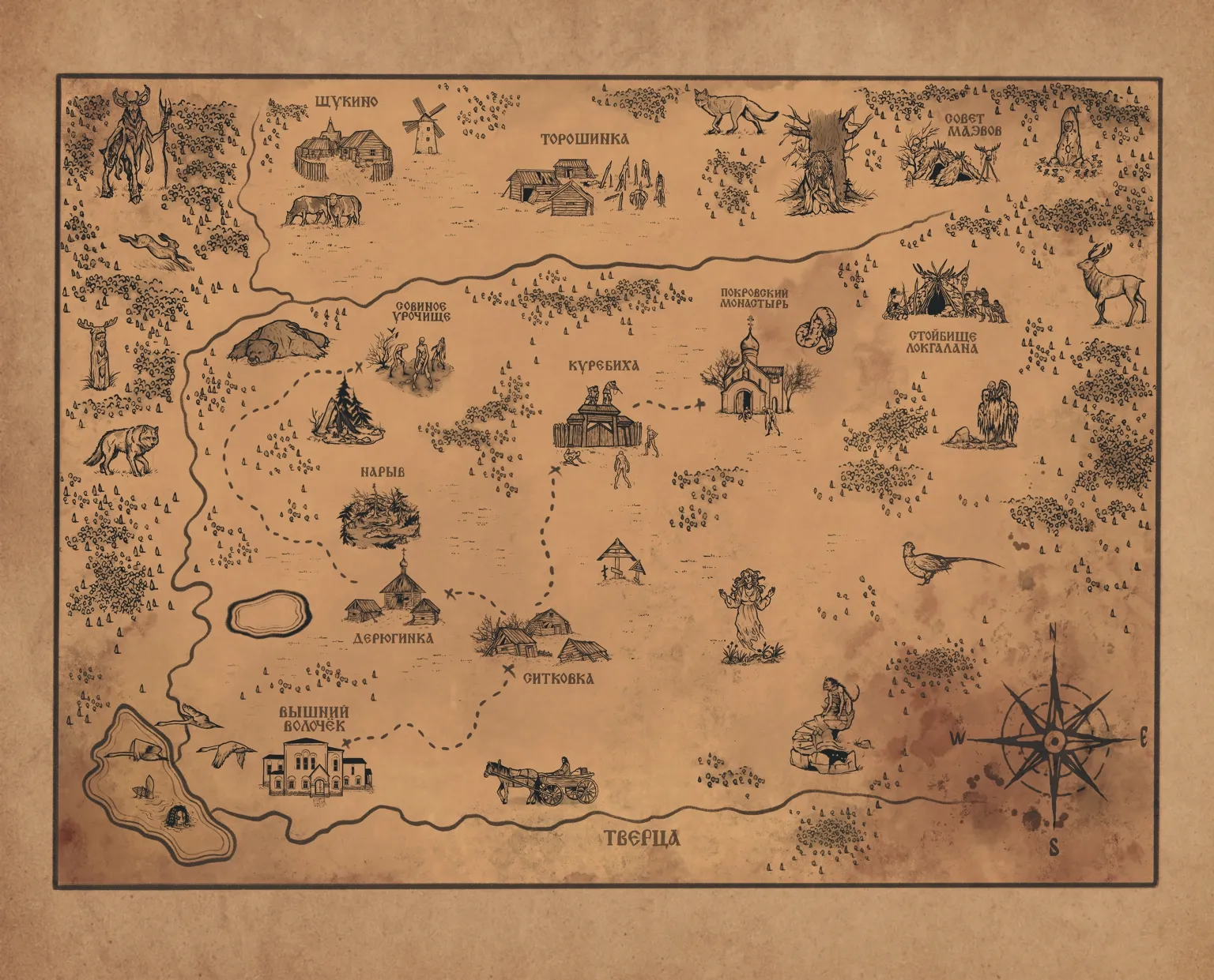 Из деревни Торошинка все люди исчезли без следа, но надолго поиски не затянулись — убитые жестоким образом жители нашлись неподалёку. Это место стало лишь отправной точкой путешествия, и масштабы бедствия быстро перестают ограничиваться одним посёлком. На карте, что добавили в книгу, не так много локаций, но каждая запомнится очередной трагедией. Причём все описаны в деталях, которые преподносятся с циничным, но очаровательным юмором.